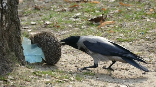 Ворона в деле! Ворона против крысы, чайки, ежа, собаки, кошки...