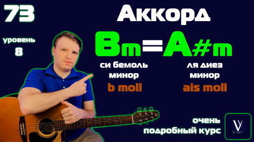 УРОК №73. Bm на гитаре. Как играть аккорд A#m на гитаре. Си бемоль минор на гитаре. Ля диез минор на гитаре. b moll. ais moll.