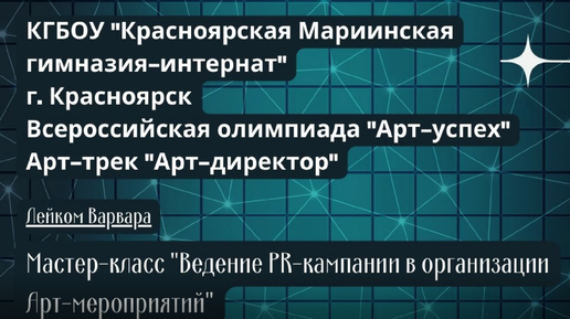 Мастер-класс "Ведение PR-кампании в организации Арт-мероприятий"