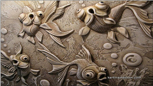 Барельеф в интерьере ванной РЫБЫ роспись стен в Одессе