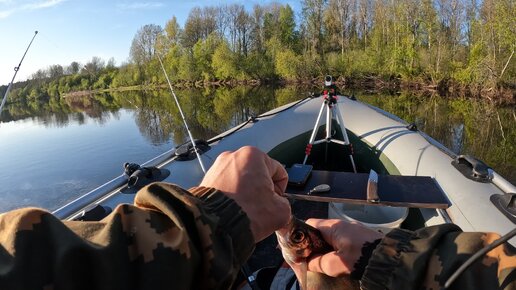 Рыбалка на реке с лодки на донки