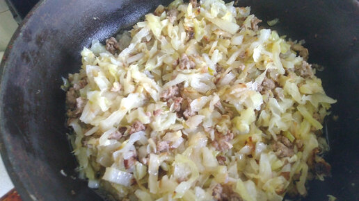 Жареная капуста с фаршем. Нет ничего проще. Только капуста, фарш, растительное масло, адыгейская соль и 20 минут вашего времени