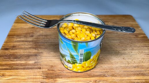 Обнаружила дома банку консервированной кукурузы и решила приготовить вкусный салат без майонеза (пару минут и готово)