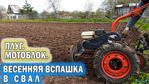 Вспашка плугом весенняя в свал. Мотоблок Агат с задачей справился. 2022