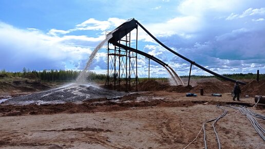 Намыв песка земснарядом с использованием грохота карьер Ветренка.
