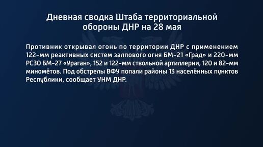 Дневная сводка штаба территориальной обороны ДНР на 28 мая 2022 года