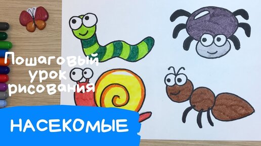 Насекомые рисунок 2 часть. Рисунок червяк паук улитка муравей. Как нарисовать насекомых. Карандаши и краски