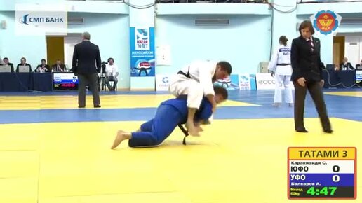 60 kg Каракизиди С Балкаров А 30 03 2015 Т3 Первенство России по дзюдо среди юниоров и юниорок