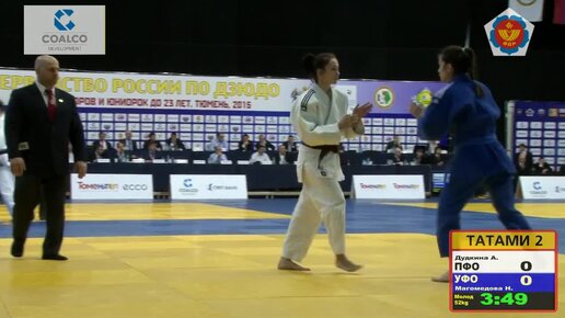 52 kg Дудкина А Магомедова Н 30 03 2015 Т2 Первенство России по дзюдо среди юниоров и юниорок, ТЮМЕНЬ