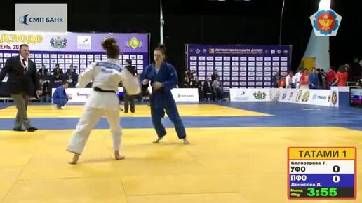 48 kg Белозерова Т Денисова Д 30 03 2015 Т1 Первенство России по дзюдо среди юниоров и юниорок
