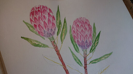 Процесс рисования протеи акварелью