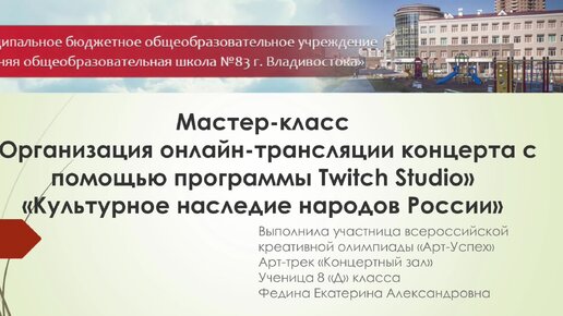 Мастер-класс «Организация онлайн-трансляции концерта с помощью программы Twitch Studio»