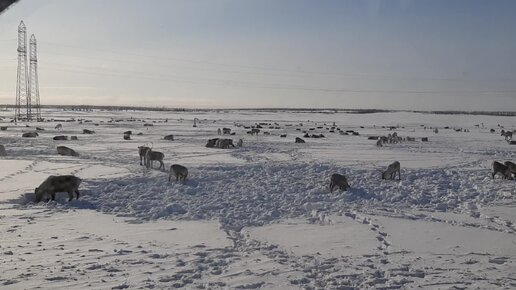 20220327_095628 Стадо оленей в зимней тундре и мой пес, на них любующийся