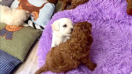 маленькие щеночки первый раз пробуют мясо!