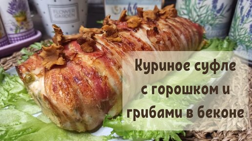 Куриный рулет - суфле с зелёным горошком и лисичками в беконе