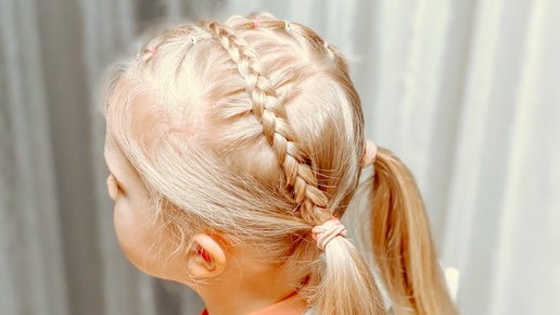 Два низких хвоста с декором в верхней части головы Прическа из резинок