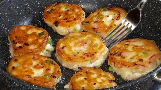 Готовлю быстро к завтраку ленивые пирожки или оладушки за 10 минут. Все смешала и на сковороду. Проще не бывает.