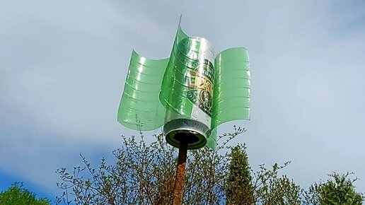 Ветряк из пластиковой бутылки и алюминиевой банки своими руками! Отпугиватель кротов и птиц.