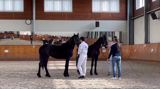 Малыши фризской породы лошадей: двое постарше и совсем малышка с мамой