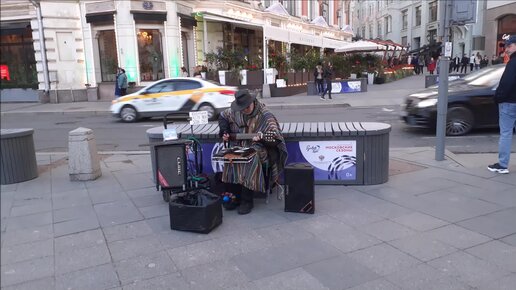 Шикарная гитара на фоне проезжающих авто. Завораживает
