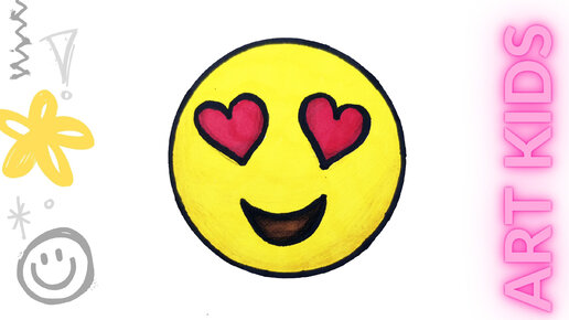 Как нарисовать смайлик с сердечками вместо глаз / Простой урок рисования