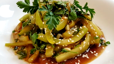 Быстрая закуска из жареных кабачков с соевым соусом и кунжутом. Лапша из кабачков!