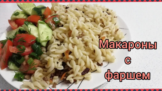 Макароны с фаршем и овощным салатиком. Быстрое блюдо на ужин.
