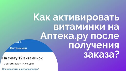 Как активировать витаминки на Аптека.ру после получения заказа?