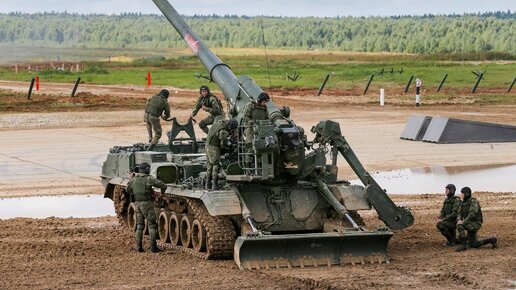 Боевая работа расчетов 203-мм самоходных артиллерийских установок Малка