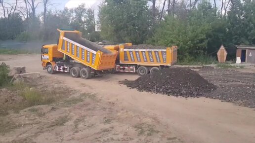 Шакман F2000. Выгрузка асфальтового скола для отсыпки дороги.