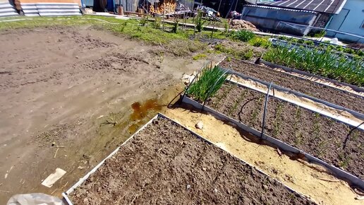 30мая. Дожди. Подсеваю свеклу в грядки с луком.