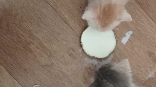 Котята учатся пить молоко