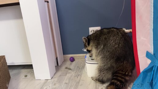Проказные еноты разобрали поилку, вскрыли корм и украли шоколад