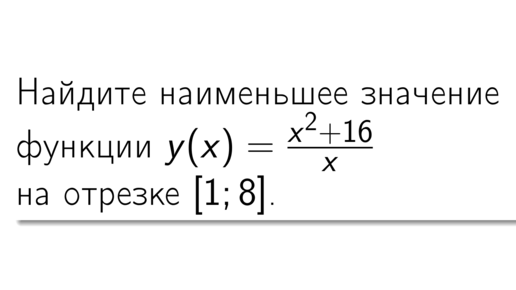 Задание 11. #7 Найдите наименьшее значение функции y(x)=(x^2+16)/x на отрезке [1;8].