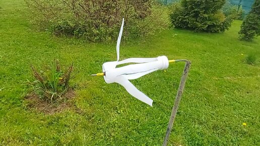 Ветряк из пластиковой бутылки от йогурта своими руками. Как избавиться от птиц и кротов.