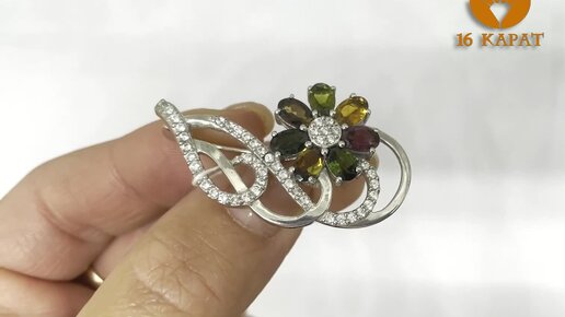 💎БРОШЬ ИЗ СЕРЕБРА С ТУРМАЛИНОМ И ЦИРКОНИЕМ
