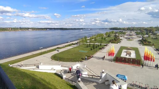 Вид на Стрелку и набережную Ярославля под красивое и душевное музыкальное сопровождение уличного музыканта