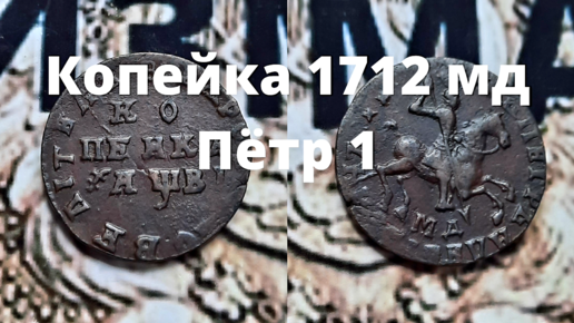 Копейка 1712 мд Пётр 1,как появилась традиционная копейка.