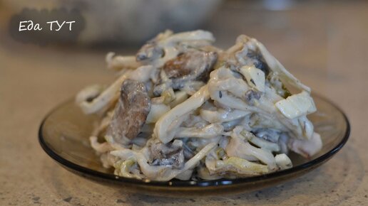 Салат из кальмаров _с грибами_ простой рецепт