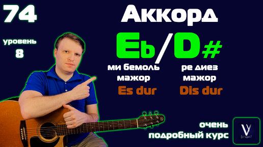 УРОК №74. Eb на гитаре. D# на гитаре. Как играть аккорд Eb на гитаре. Как играть D# на гитаре. Es dur. Dis dur.