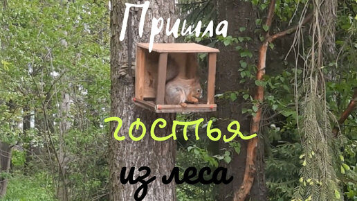 Перепуганный бельчонок на садовом участке.