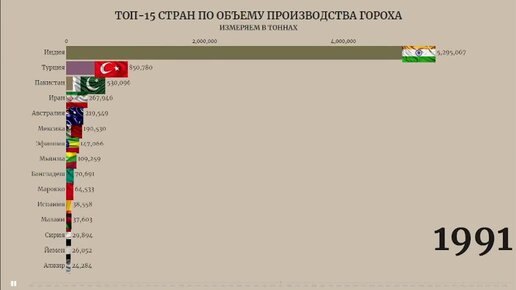 ТОП-15 стран по объему производства гороха