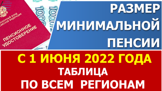 Минимальная пенсия с 1 ИЮНЯ 2022 года. Таблица по ВСЕМ регионам.