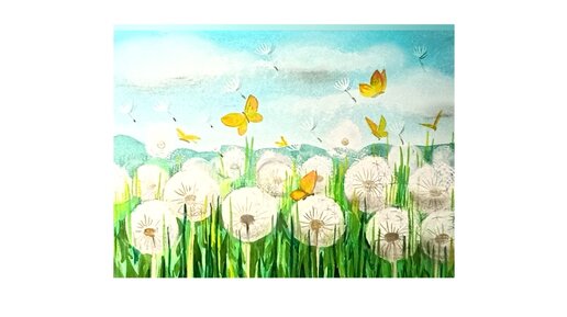 Одуванчиковый луг - рисунок гуашью.