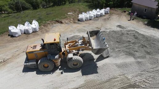 Процесс замешивания состава для реконструкции грунтовой дороги в дорогу с твердым покрытием