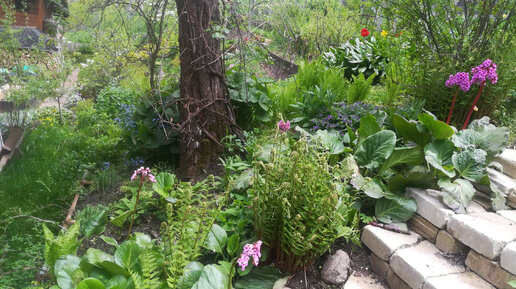Видео знакомство с теневым цветником. 31 мая. Полная декоративность будет через пару недель, когда наберут силу папоротники...