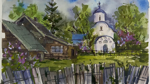 Церковь Успения на Волотовом поле, акварель