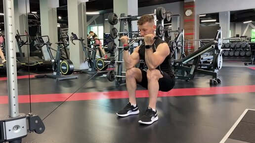Упражнение на бицепс, сгибание рук с прямой рукоятью с нижнего блока