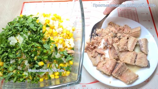 Салат с консервированной горбушей и рисом. Делюсь рецептом