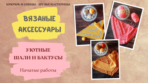 Вязаные аксессуары. Уютные шали и бактусы / Начатые работы